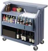 Cambar Portable Bar, 54''L, includes 100 lb. ice sink w/drain, removable 5-bottle speed rail, removable top shelf, (4) 5'' swivel casters w/brakes, polyethylene construction, dark brown Features Brand: Cambar Manufacturer's Category: Portable Bar Color: Dark Brown Dimensions: 46.130(H) X 54.000(W) X 25.880(D) Finish: Polyethylene Work Shelf, And Cabinet Length: 54'''' Style: With Ice Bin And Workboard Top