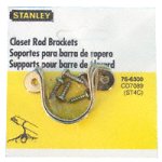 Stanley 766300 - Brass Tone(ST4C) Closet Rod BracketStanley is proud of its reputation for excellence. They are dedicated to continually testing, designing and improving their products to ensure quality and maximum function. Maintaining their standing of being the world's best at what they do is important to them and what you expect from a name like Stanley. Stanley 766300 - Brass Tone(ST4C) Closet Rod Bracket Features:; For mounting closet poles 1" in diameter ; 1" projection ; Mounding hardware included ; Satin Brass finish ; 2 per card