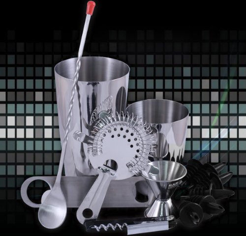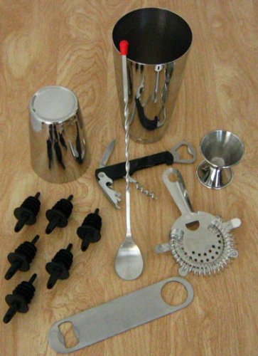 Other excellent gift items from the VIP collection include an ice bucket, flask, and shaker, all in the same stainless and "leather" styling. Metrokane also makes the fabulous art-deco Bullet cocktail shaker, and many intriguing accoutrements for the wine connoisseur. --Ann Bieri VIP Bar tool set with faux leather wrapped stand. Includes strainer, citrus knife, stirrer, ice spoon, double jigger measure, bottle opener.